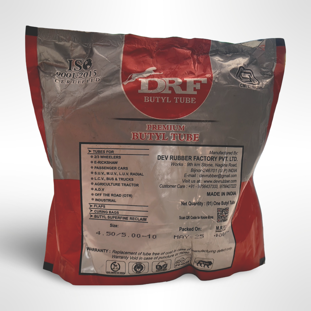 The DRF Butyl 4.50-10 Tube is a high-quality inner tube designed to provide reliable and long-lasting inflation for a variety of small vehicles. Crafted from durable butyl rubber, this tube offers excellent air retention, resistance to punctures, and overall dependable performance. Whether you’re maintaining a classic scooter, a hardworking utility vehicle, or a specialized piece of equipment, the DRF 4.50-10 tube provides the support you need for smooth and safe operation.